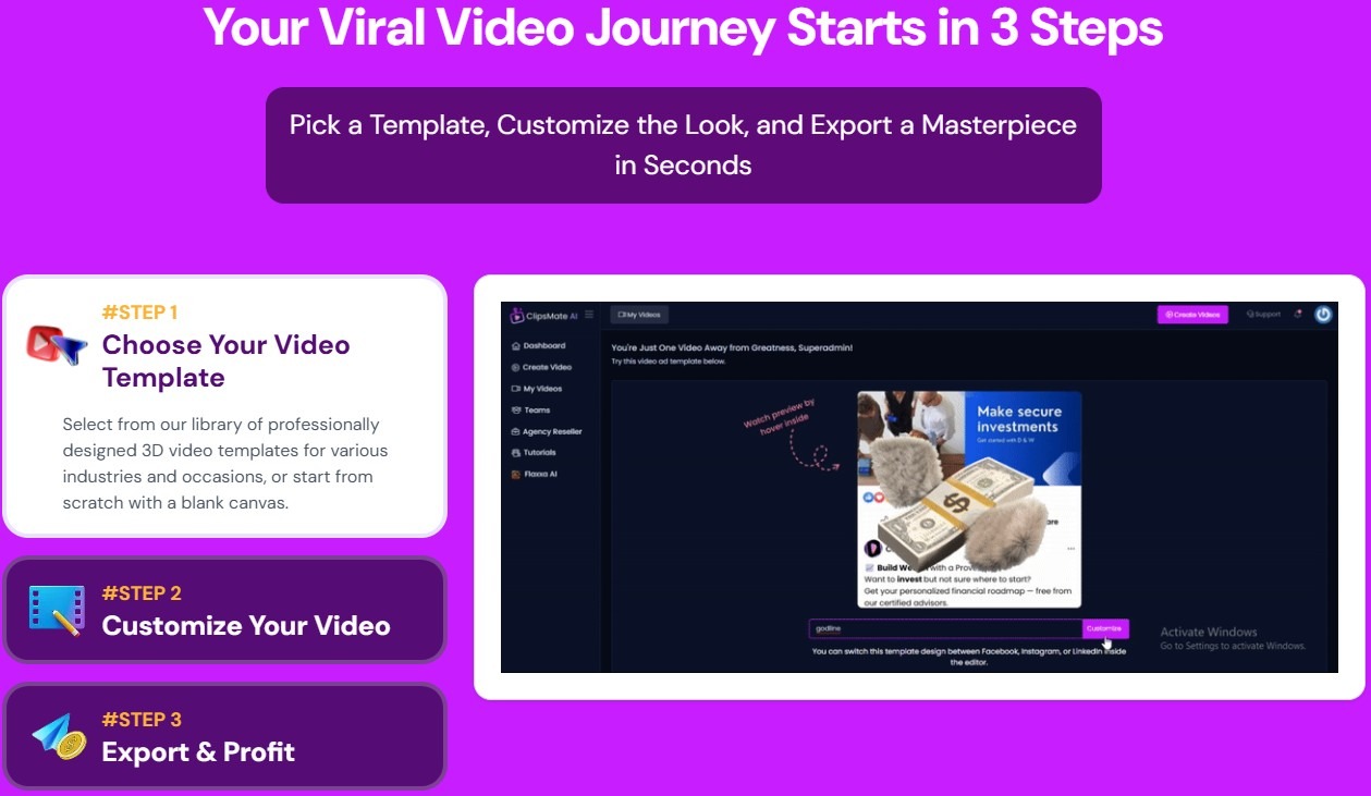 ClipsMate AI is a smart tool that helps you make social media videos quickly and easily. It uses AI (artificial intelligence) to turn text, pictures, or even chat messages into videos. This makes it a great tool for content creators and marketers. If you want a simple way to make videos that get attention, ClipsMate AI is a good choice.