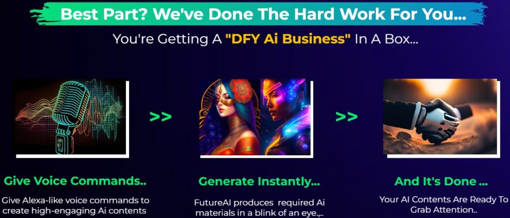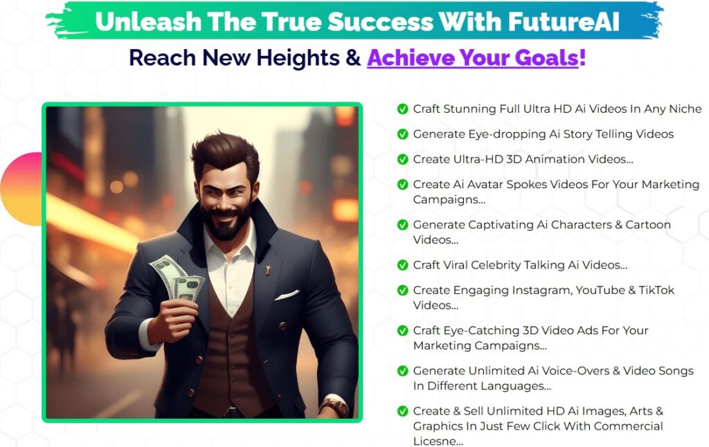 FutureAI is a powerful tool for creating and selling AI-generated content. It saves time, money, and effort by putting all AI tools in one place. Whether you’re a beginner or an expert, FutureAI makes it easy to create amazing videos, images, music, and more.