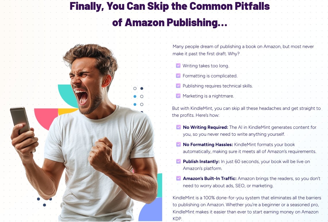 The most groundbreaking part? You don’t need any writing, editing, or design skills whatsoever. KindleMint handles everything for you in about 60 seconds.