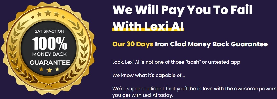 While that is unlikely, we removed all the risk for you. If you tried Lexi AI and failed, we will refund you every cent you paid