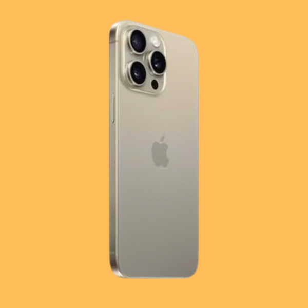 This iPhone has a beautiful Natural Titanium finish, which looks cool and feels light. It’s made with strong titanium—just like what’s used in airplanes—so it’s tough but still easy to hold. The smooth edges and matte back make it feel fancy in your hand.